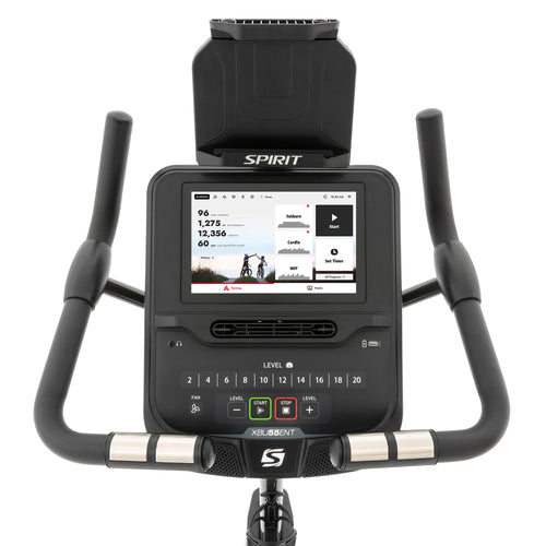 The XBU55ENT is a premium upright bike that brings an effective fitness experience home. Powered by a durable belt drive system and a 30 lb flywheel, it offers a smooth and quiet ride with 20 levels of resistance for tailored workouts. Its standout feature is the impressive 10.1″ ClearView™ touchscreen console display, providing a user-friendly interface to monitor essential metrics like calories, time, distance, and heart rate. Garmin users can pair their compatible smart wearables to the Spirit Fitness ENT touchscreen console to view your most significant training data in real-time. Bluetooth adds connectivity to 3rd party apps and support for audio. With hand pulse sensors, a heart rate receiver and transmitter (chest strap not included), water bottle holder, and transportation wheels for convenience. The XBU55ENT is designed to support your fitness journey for years to come.