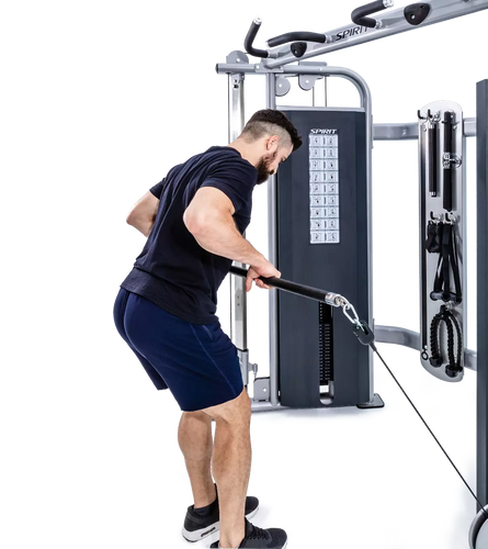 The versatility of the ST800FT is what sets it apart from other equipment. The standard weight stack of 210 lb is adjustable in 10 lb increments using the magnetic pins with machined solid aluminum knobs. The included attachments, pull-up bars, climbing grips, and pulley positions provide an almost endless array of possible exercises all from one machine. The wide base, and easily adjustable cable ends also rotate 180° making the Spirit Fitness ST800FT accessible to a variety of users and opens new workout possibilities by easily accommodating things like rehab equipment, workout benches, or stability balls.